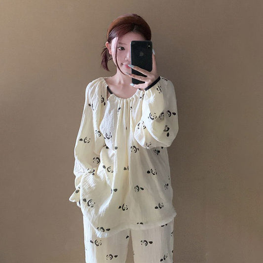 S~5XL【インナー】パンダ柄 チャイニーズテイスト 長袖 ワイドシルエット ルームウェア 大きいサイズ レディース 春秋