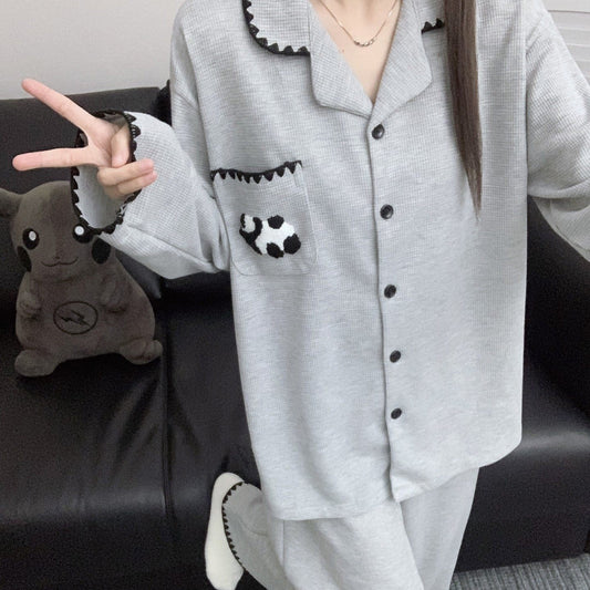 【インナー】ワッフルチェック パンダ コットン素材 長袖長ズボン ルームウェア レディース/メンズ ペア対応 春