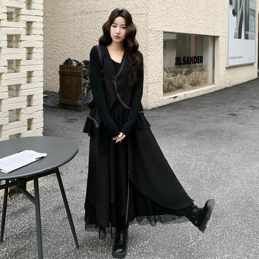 【ワンピース】フレンチ風 ベスト+ドット柄ワンピース セットアップ レディース 2026春新作 ロング丈 大人可愛い【SHシリーズ】