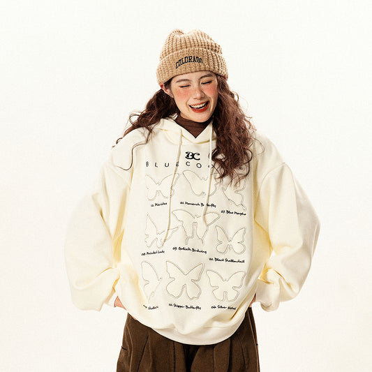 【トップス】ヴィンテージ風 デザイン 蝶刺繍 フードパーカー レディース 新作 ゆったり リラックス 長袖 トップス【FCシリーズ】