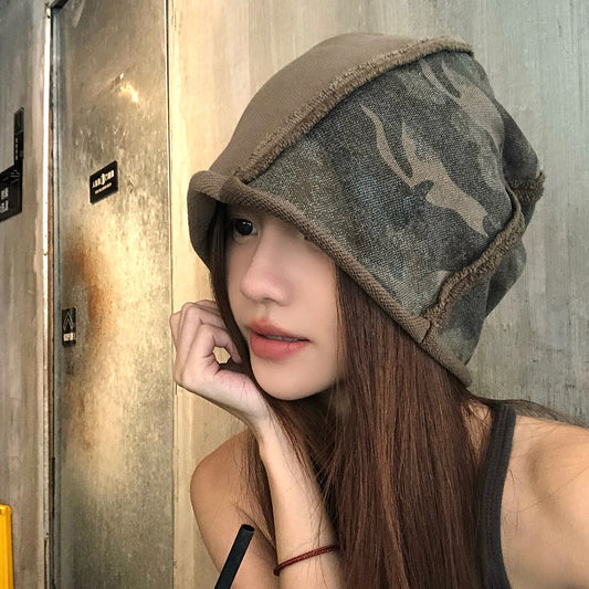 【グッズ】迷彩ロールワッチ 春秋 小顔見え Y2K風 包頭 ニット帽 個性デザイン