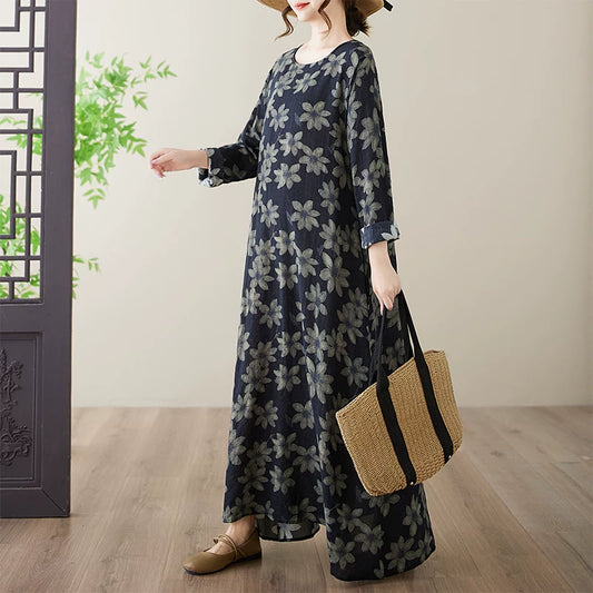 【ワンピース】新中華風 レトロ ファッション プリント 長袖 ワンピース ゆったり 美シルエット 個性 ロングドレス【SHシリーズ】【AHシリーズ】