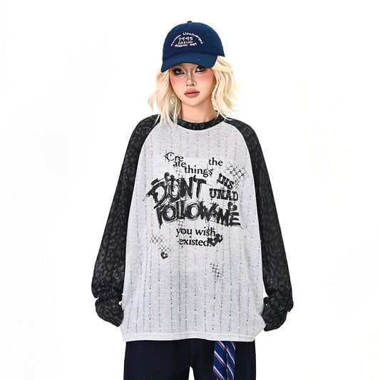 【トップス】レオパード切替 長袖Tシャツ オーバーサイズ アメリカンヴィンテージ BFスタイル【FCシリーズ】