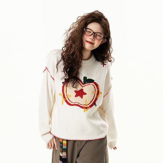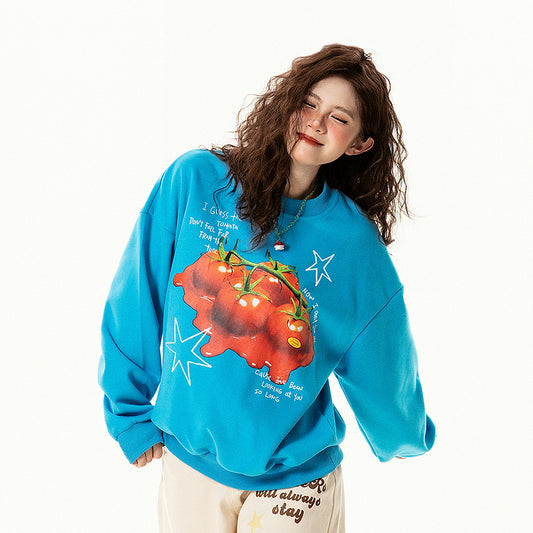 【トップス】アメリカンレトロ トマト柄 クルーネック ニットパーカー レディース 秋 ゆったり 着回し セーター【FCシリーズ】