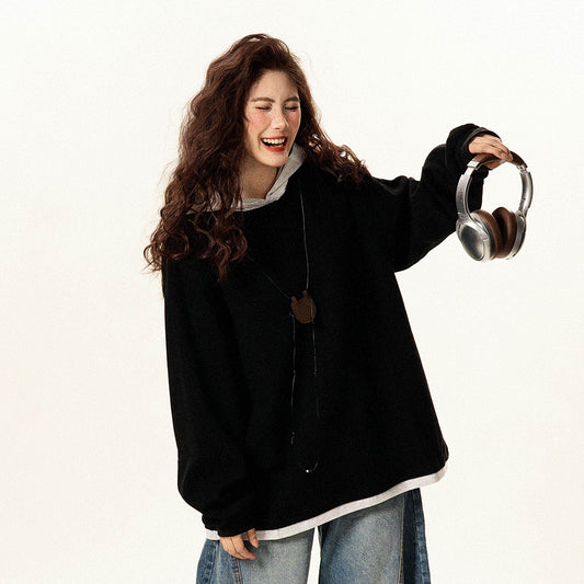 【トップス】フェイクレイヤード フードパーカー 春秋 男女兼用 ゆったり カジュアル トップス【FCシリーズ】