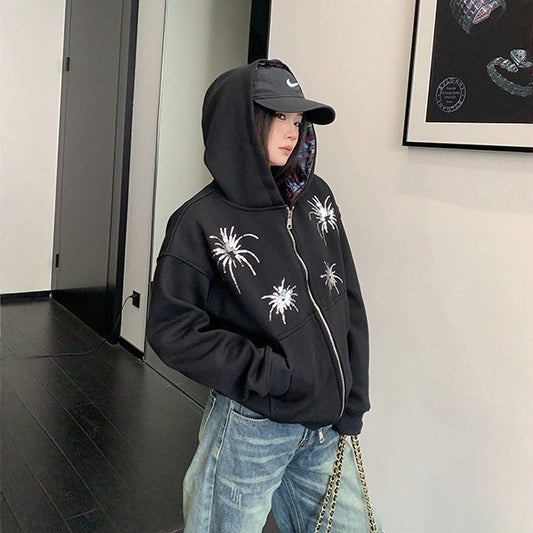 【アウター】アメリカンヴィンテージ レオパード ロゴ ジップアップパーカー ゆったり 男女兼用 カジュアルカーディガン【FCシリーズ】