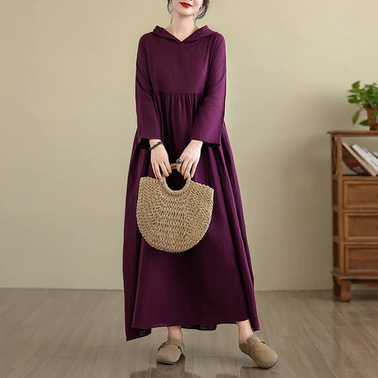 【60%OFF⭐️早い者勝ち】【ワンピース】フーディーワンピース 長袖 無地 ナチュラルフェミニン レトロ感【JZシリーズ】