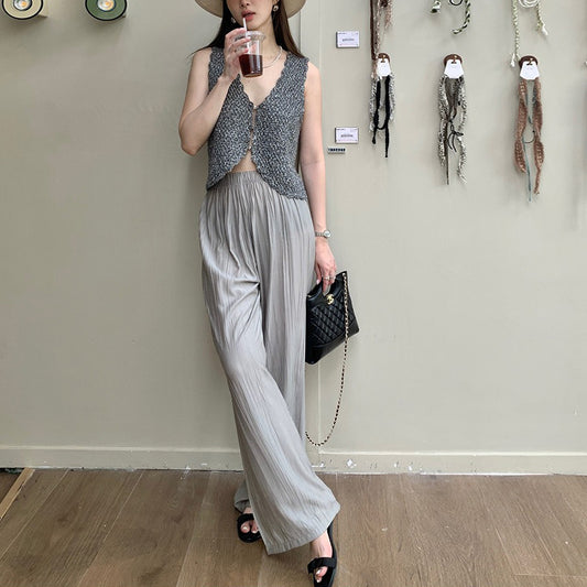 【ボトムス】カジュアル 薄手 韓国風 通気性 春夏 ハイウエスト パンツ