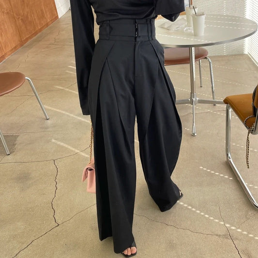 【ボトムス】レトロ 春夏秋 ハイウエスト ワイド パンツ
