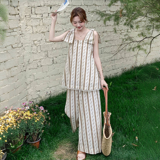 2点セット!【セットアップ】ストライプ柄キャミソール+ワイドパンツ 上下 セットアップ 夏 フレンチリゾート風【SHシリーズ】