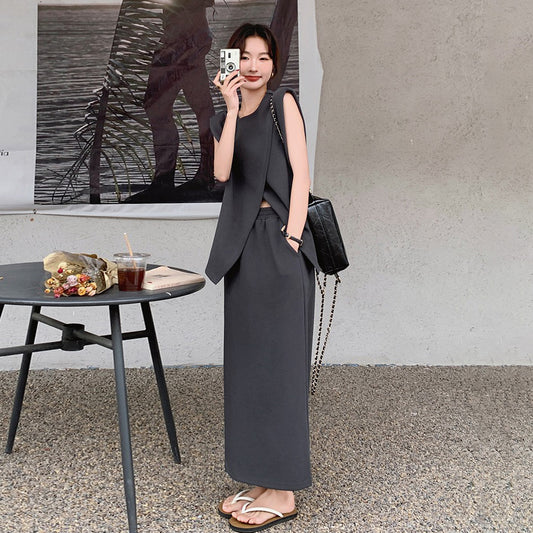 2点セット!【セットアップ】スリットベスト+ハイウエストスカート 上下セット 春夏秋トレンド感たっぷり【JZシリーズ】