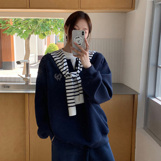 【トップス】韓国風 ストライプ oversize 合わせやすい パーカー【FCシリーズ】