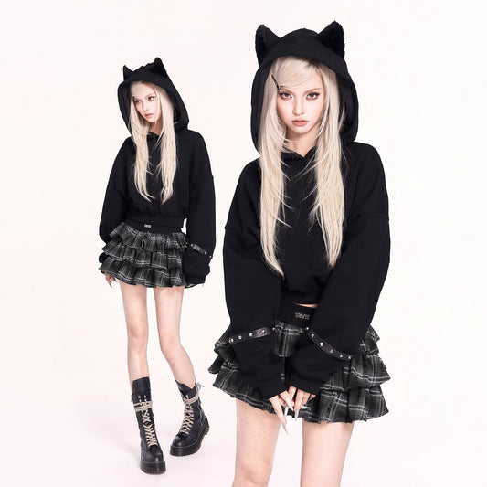 S~3XL【トップス】黒猫柄 フード付き スウェット レディース 秋冬 裏起毛 ゆったり おしゃれ【FCシリーズ】