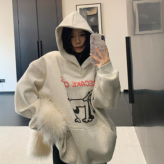 【トップス】ヴィンテージ風 カートゥーンプリント 裏起毛 フード付き スウェット ゆったり パーカー【FCシリーズ】
