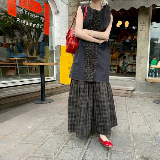 2点セット!【セットアップ】配色チェック柄ベストワンピース+ワイドパンツセットアップ 2点セット【SHシリーズ】