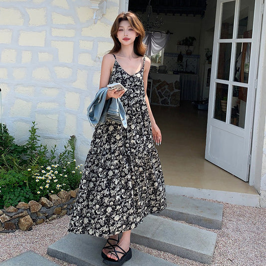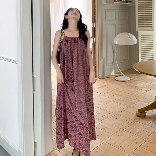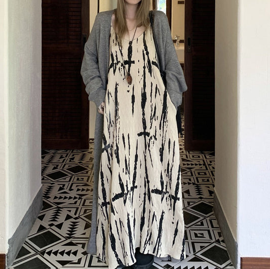 【単品注文】【セットアップ】レトロ ビーチドレス 春夏 ルーズ リゾート風 ノースリーブワンピース+カーディガン 2点セット【SHシリーズ】