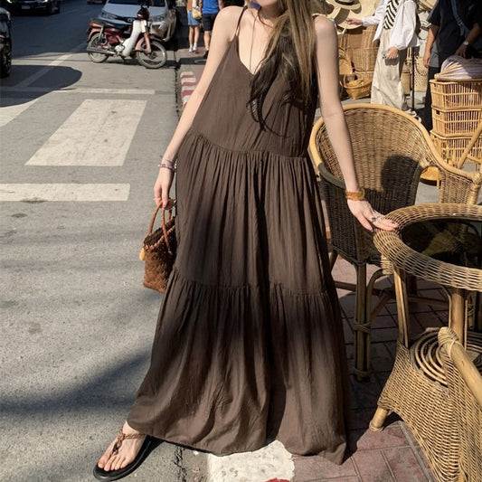 【単品注文】【セットアップ】韓国風ビーチドレス 夏 無地 スリム見え ドレープ感 リゾート ノースリーブワンピース+カーディガンセット