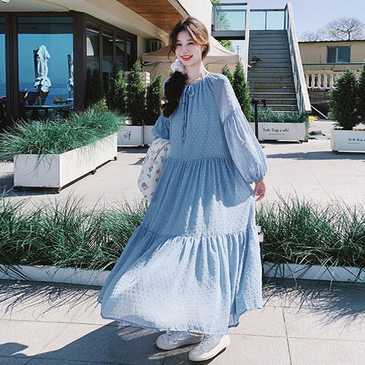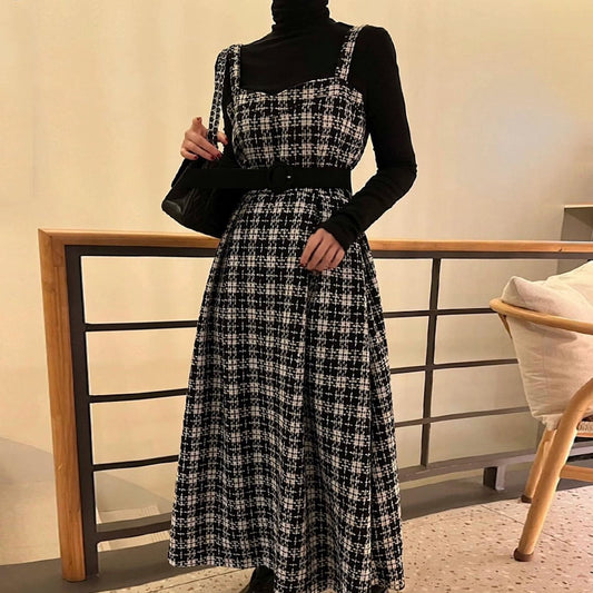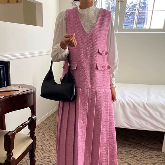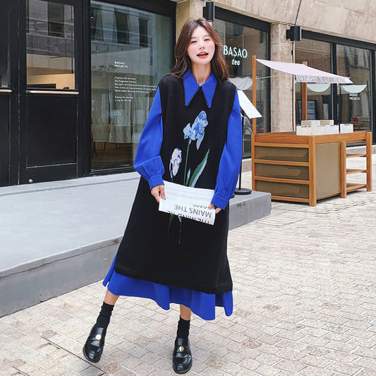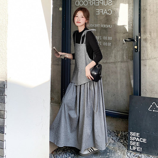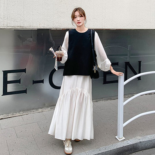 2点セット!【セットアップ】ベスト重ね着風 ロングワンピース 2点セット 春秋 韓国スタイル フレッシュ可愛い 学院風【SHシリーズ】