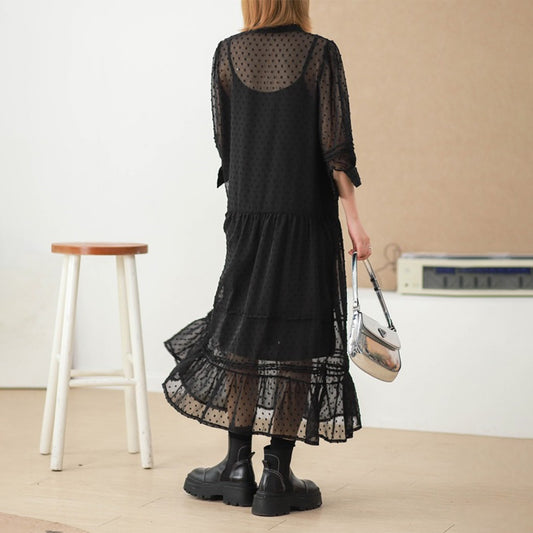 2点セット!【セットアップ】夏人気 清涼感 アート風コーデ キャミワンピース+シアーシャツ 2点セット レディース 上品ロング丈 マキシワンピース【JZシリーズ】