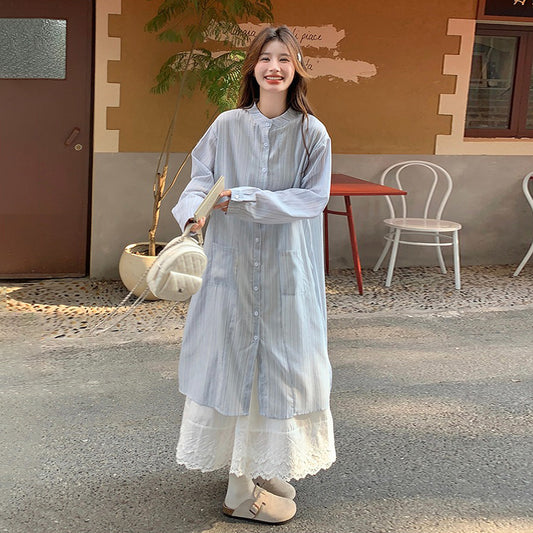 2点セット!【セットアップ】ハイセンス ストライプワンピース+スカート セット レディース 春秋 韓国風 優しげムードの絶美コーデ【JZシリーズ】
