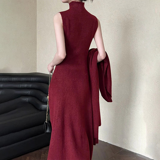 【セットアップ】春秋冬 今季マストバイ ノースリーブ ハイネックワンピースセット【SNシリーズ】