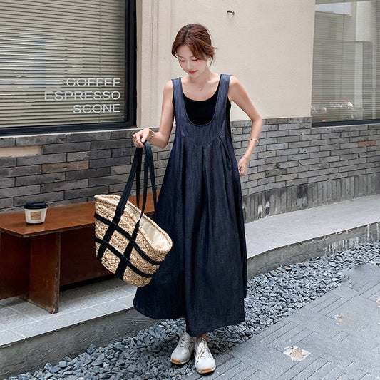 2点セット!【セットアップ】日雑風ベスト + デニム ノースリーブワンピースセットアップ 大人可愛い抜け感コーデに【JZシリーズ】