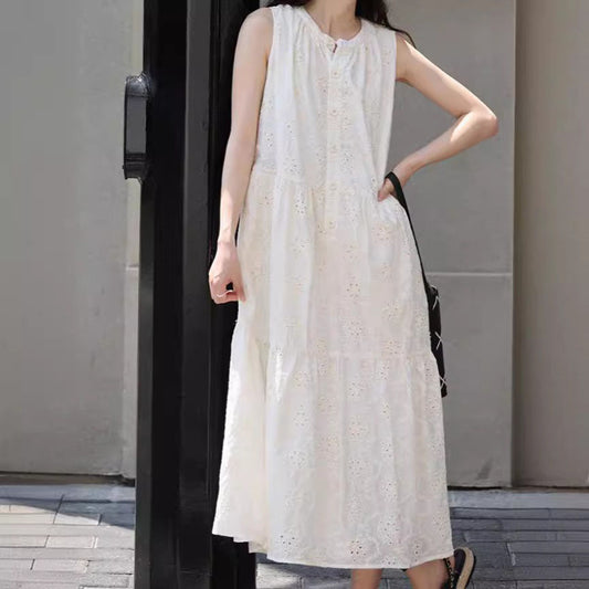 【ワンピース】フレンチ重工レース!バカンススタイル 夏向け 優しい ノースリーブワンピース