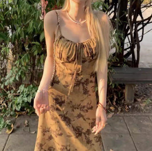 【ワンピース】フレンチ スイート レトロ 夏 エレガント スリム見え 花柄 ノースリーブワンピース【SHシリーズ】