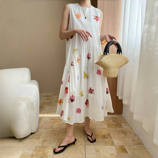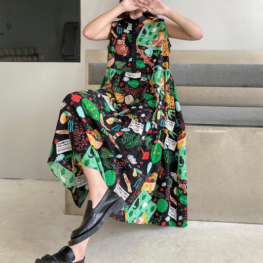 【ワンピース】夏 プリント 薄手 ルーズ ノースリーブワンピース【SHシリーズ】