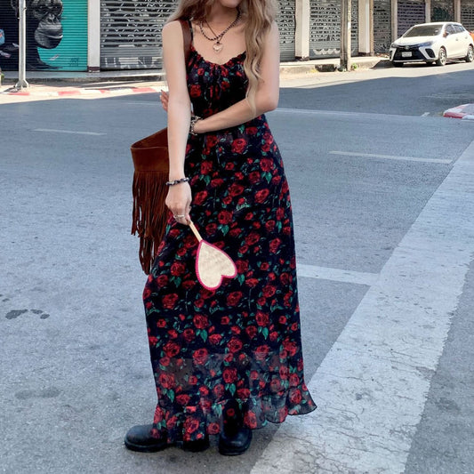 【ワンピース】夏リゾート エレガント&セクシー スリム見え バラ ノースリーブワンピース【SHシリーズ】