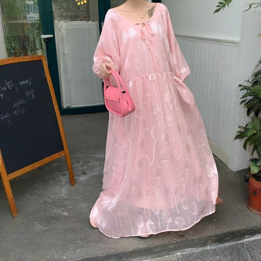 【ワンピース】春の新作 レトロ エレガント ルーズ バブルスリーブ 長袖ワンピース