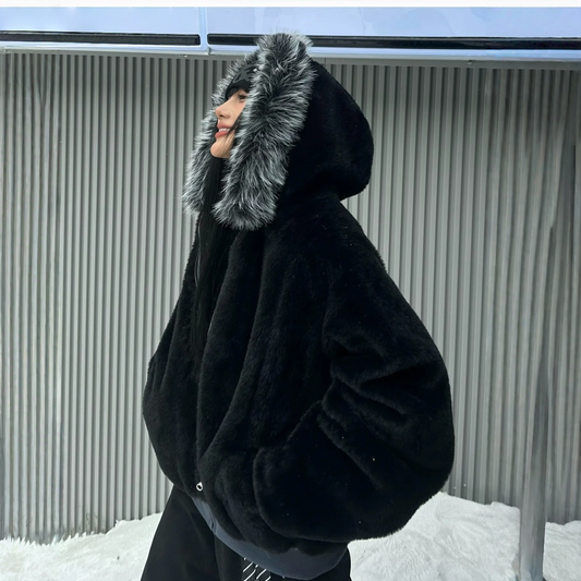 【アウター】 バイカー風レトロ フード付き 🔥 ルーズ中綿ジャケット 厚手 綿入れコート【FCシリーズ】【15~20日発送】