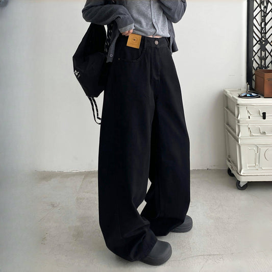 【ボトムス】シンプルカジュアル ワイドデニムパンツ レディース 春秋 ハイウエスト ゆったり スリム見え ドレープ感 フロアレングスパンツ【JZシリーズ】