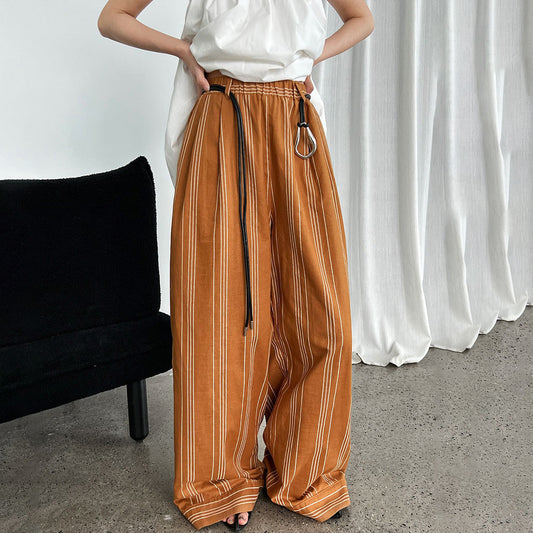 ベルト付き!【ボトムス】 夏新作 オールドマネースタイル コットンリネン ストライプ柄 パンツ 【JZシリーズ】