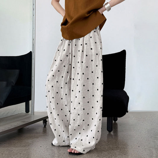 【ボトムス】夏新作 ドット刺繍入り ウエストゴム 薄手カジュアルパンツ 高級感ディテール【JZシリーズ】