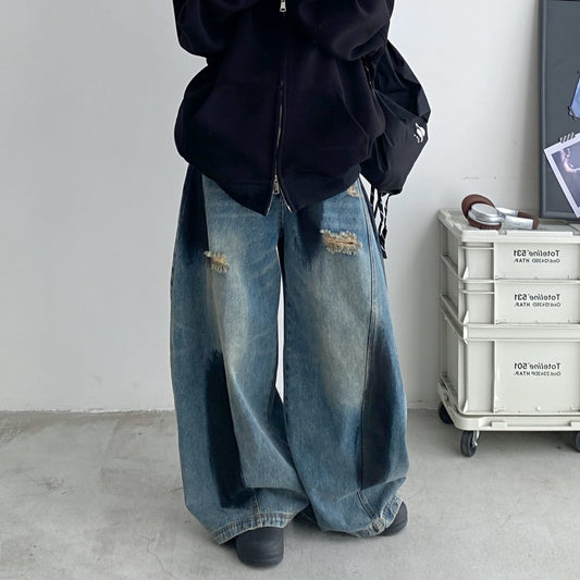 【ボトムス】春 秋 夏 冬 レトロ ヴィンテージ加工 ルーズ デニムパンツ 【FCシリーズ】