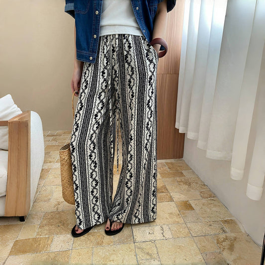【ボトムス】ボヘミアンプリント レトロエスニック風 ワイドパンツ【JZシリーズ】