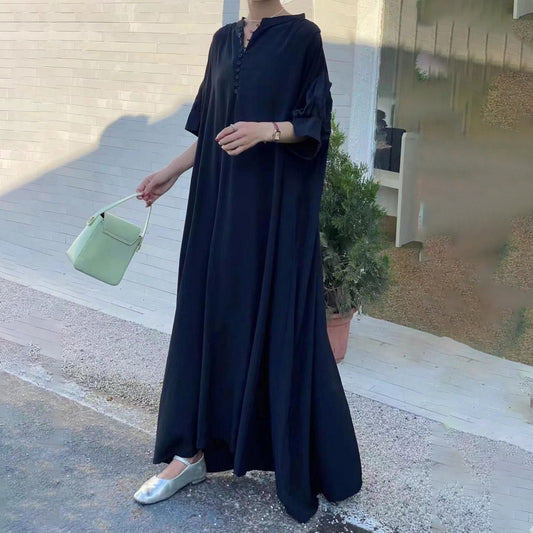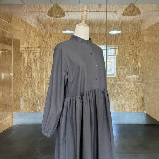 【ワンピース】春秋夏 立襟 ボタン付き 長袖ワンピース