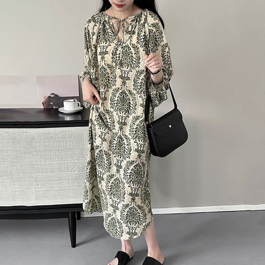 【ワンピース】春夏 フレンチ 花柄 リゾート風 ルーズ バブルスリーブ 長袖ワンピース【SHシリーズ】