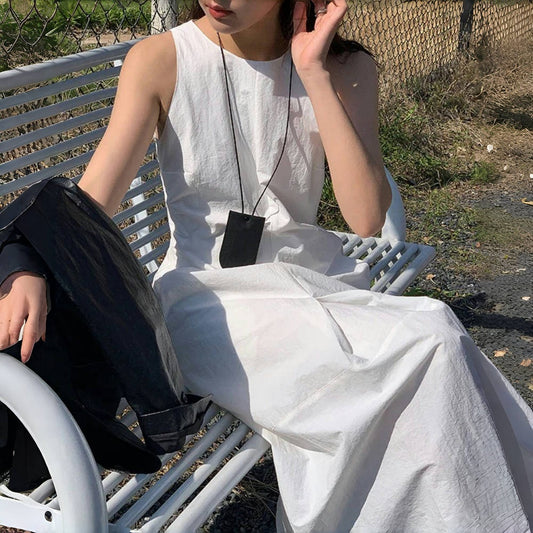 【ワンピース】夏新作 ナチュラル 不規則ヘム ホワイトノースリーブワンピース
