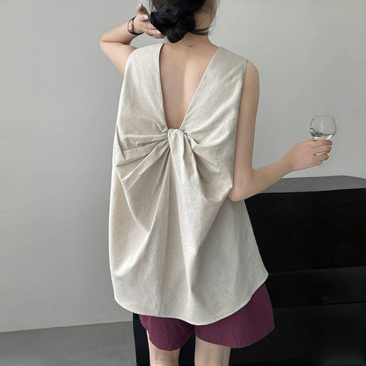 【トップス】目立つ 蝶結び 夏 レディース 若見え ノースリーブTシャツ 【JZシリーズ】