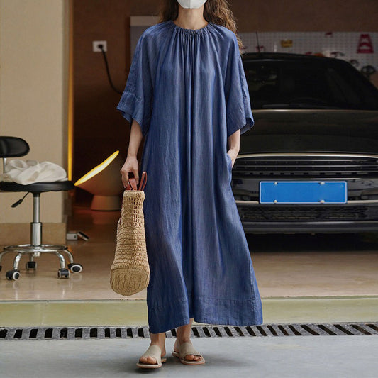 【ワンピース】夏 レトロ 大きいサイズ テンセルデニム 半袖ワンピース
