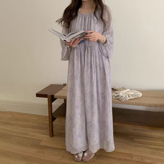 【ワンピース】夏 レトロ 花柄 ランタンスリーブ 薄手 長袖ワンピース【JZシリーズ】