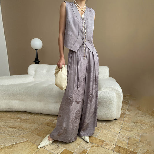【単品注文】【セットアップ】新中式 ジャカード刺繍 夏 ノースリーブ ベスト+ワイド パンツ 2点上下セット【SNシリーズ】
