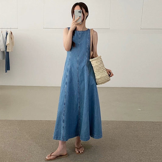 【ワンピース】夏 レトロ デニム ノースリーブ ワンピース 【JZシリーズ】