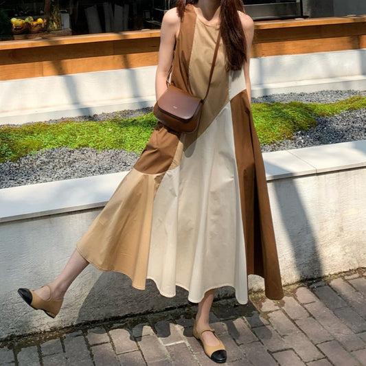 【ワンピース】夏着痩せ ラウンドネック 韓国風 ノースリーブワンピース