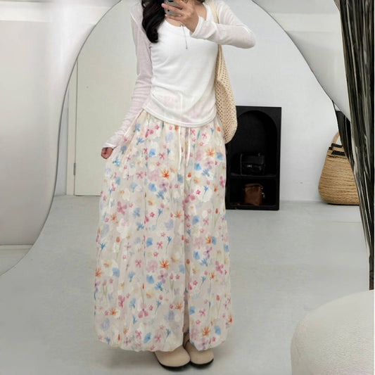 【ボトムス】夏 春 秋 花柄 大振裾 ルーズ スカート【SHシリーズ】