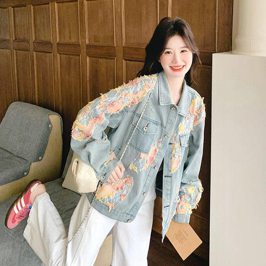 【アウター】おしゃれで若見え デザイン性デニムジャケット レディース 韓国風 レース切替配色ジャケット【SHシリーズ】