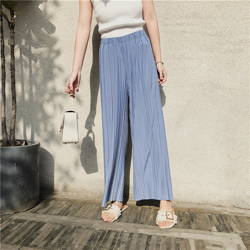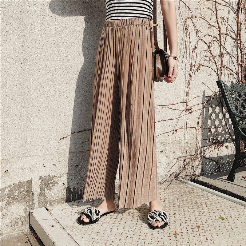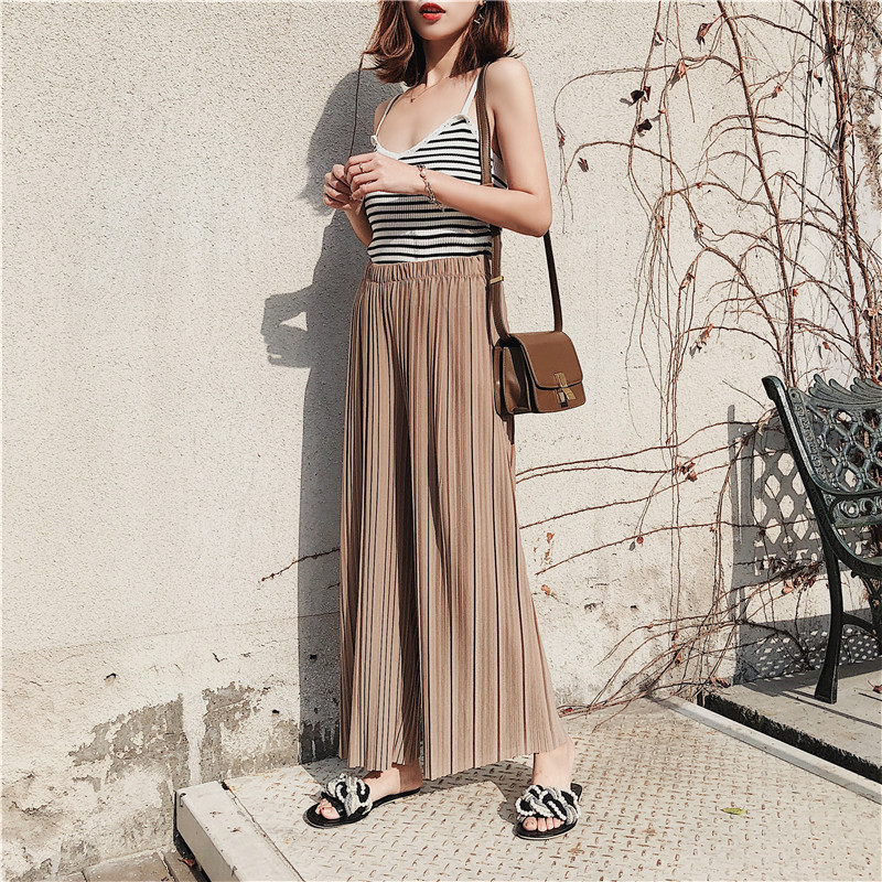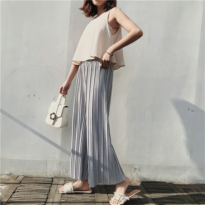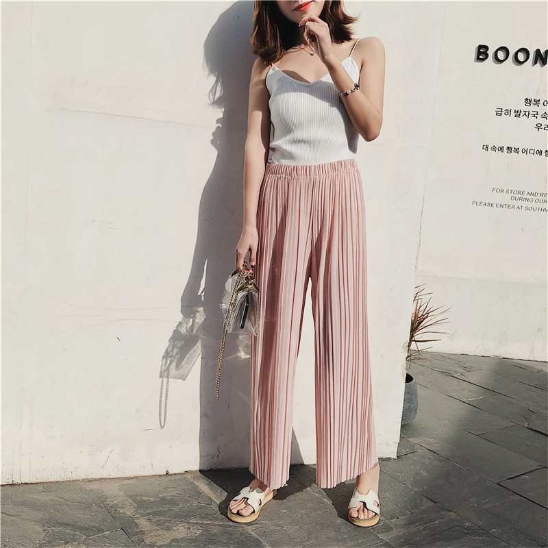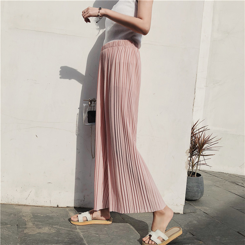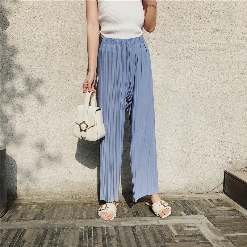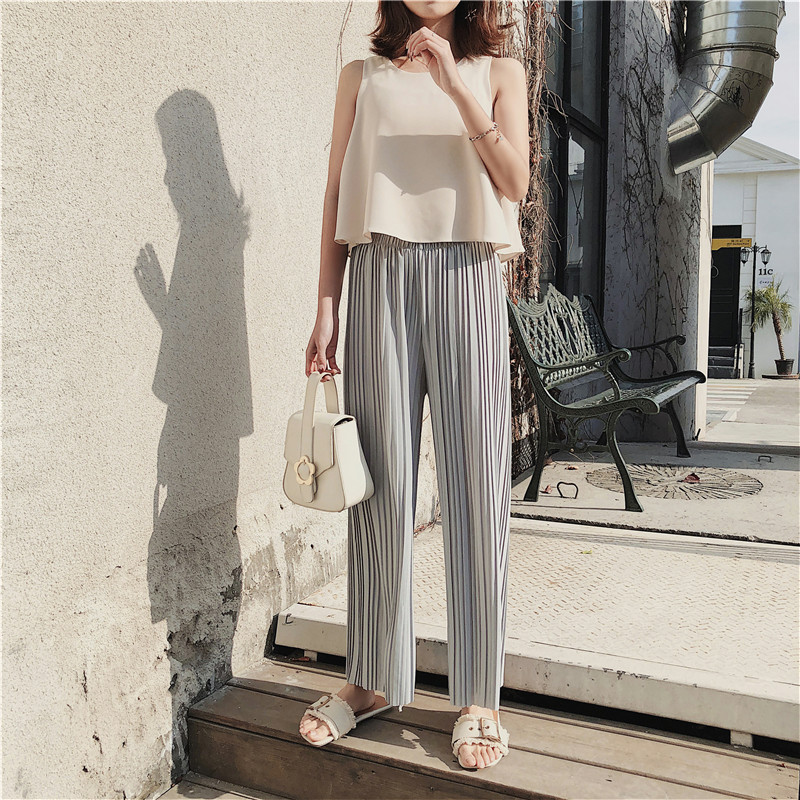 【ボトムス】ハイウエスト 春夏 プリーツ シフォン パンツ