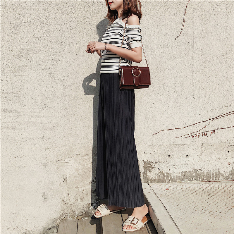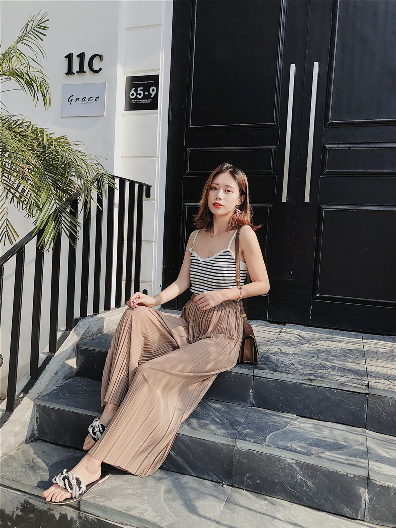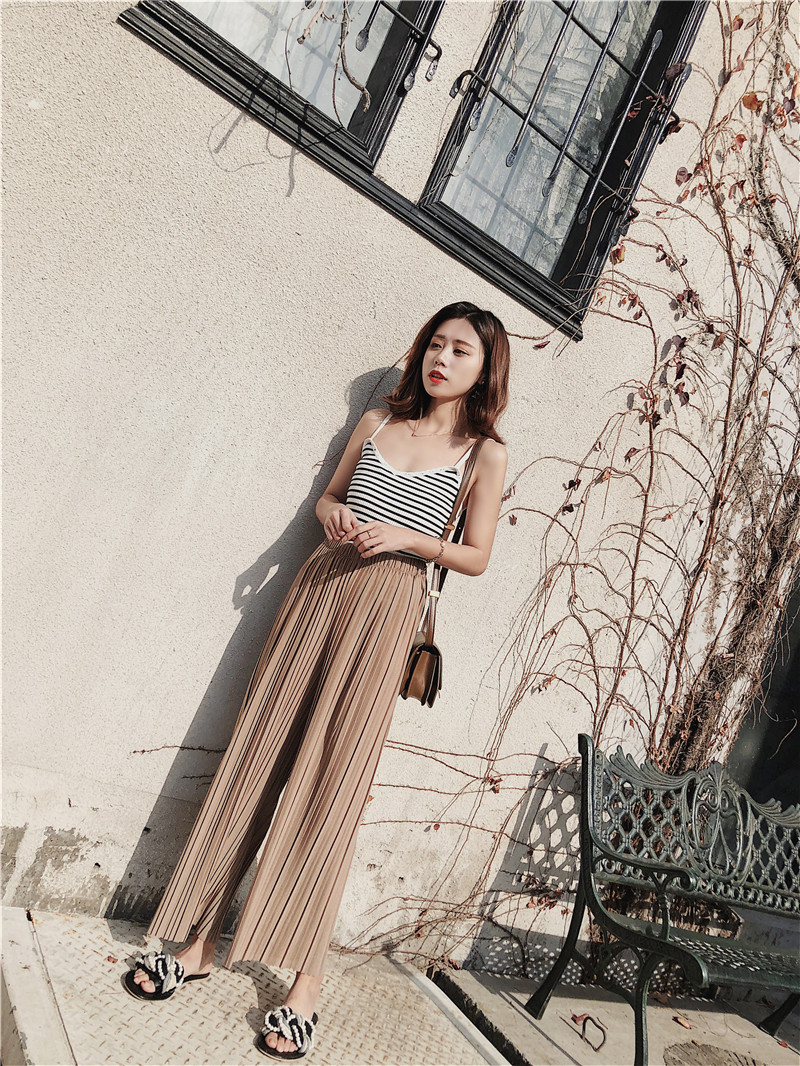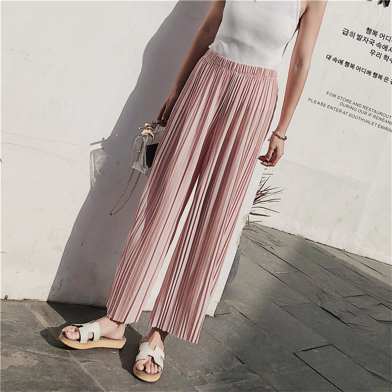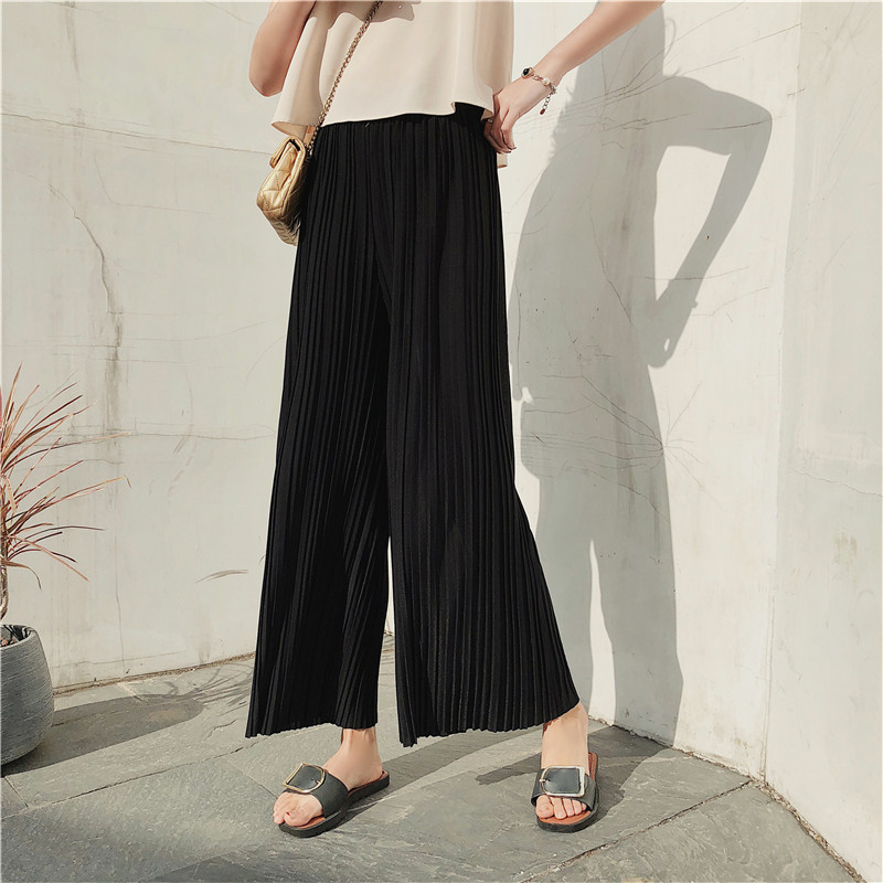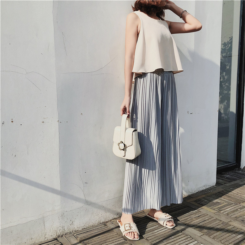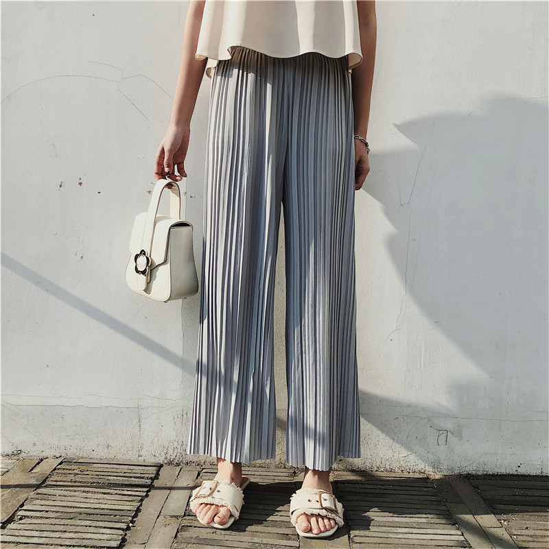 【ボトムス】ハイウエスト 春夏 プリーツ シフォン パンツ